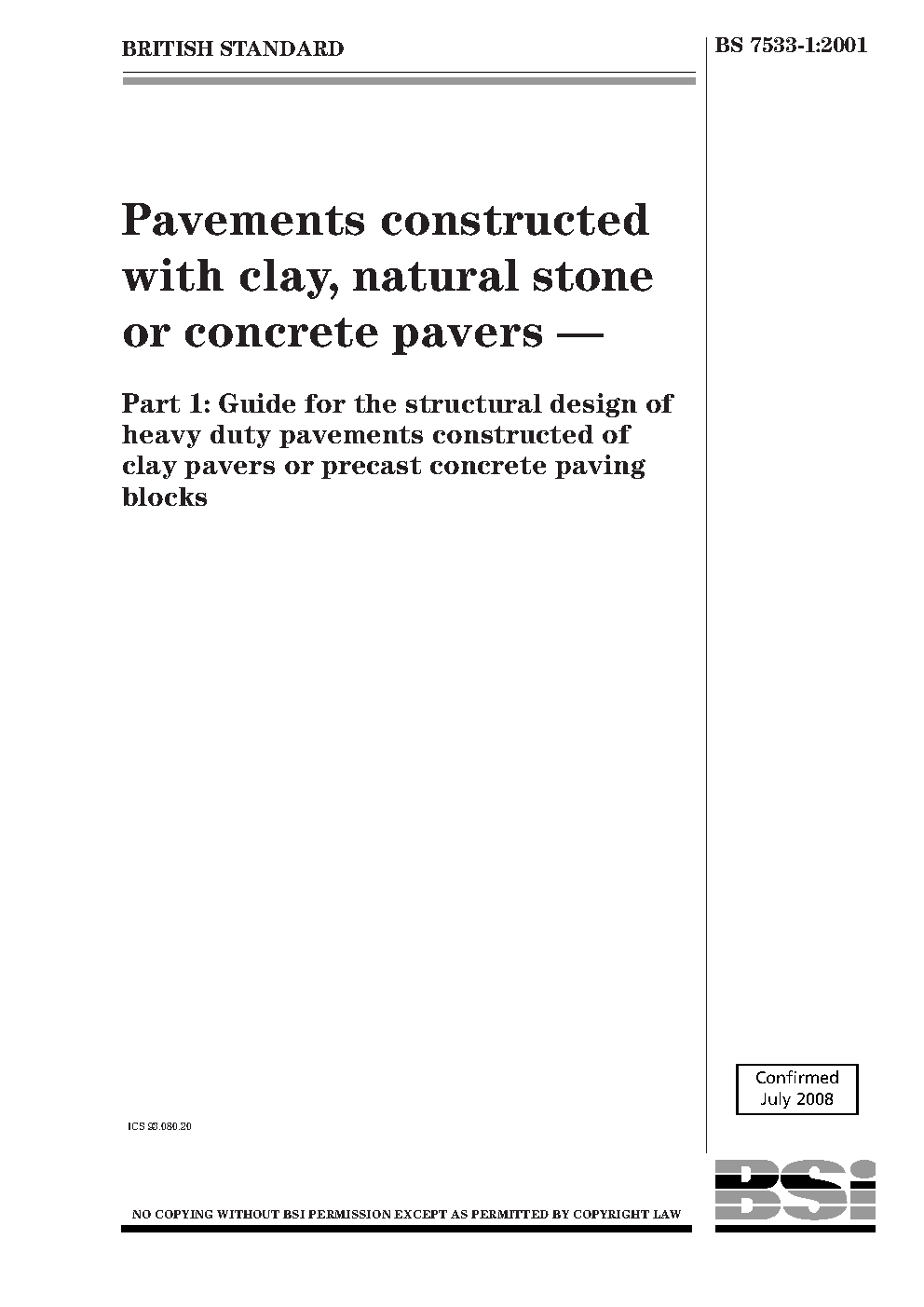 Pavements constructed with clay, natural stone or concrete pavers Guide for the structural design of heavy duty pavements clay precast paving blocks