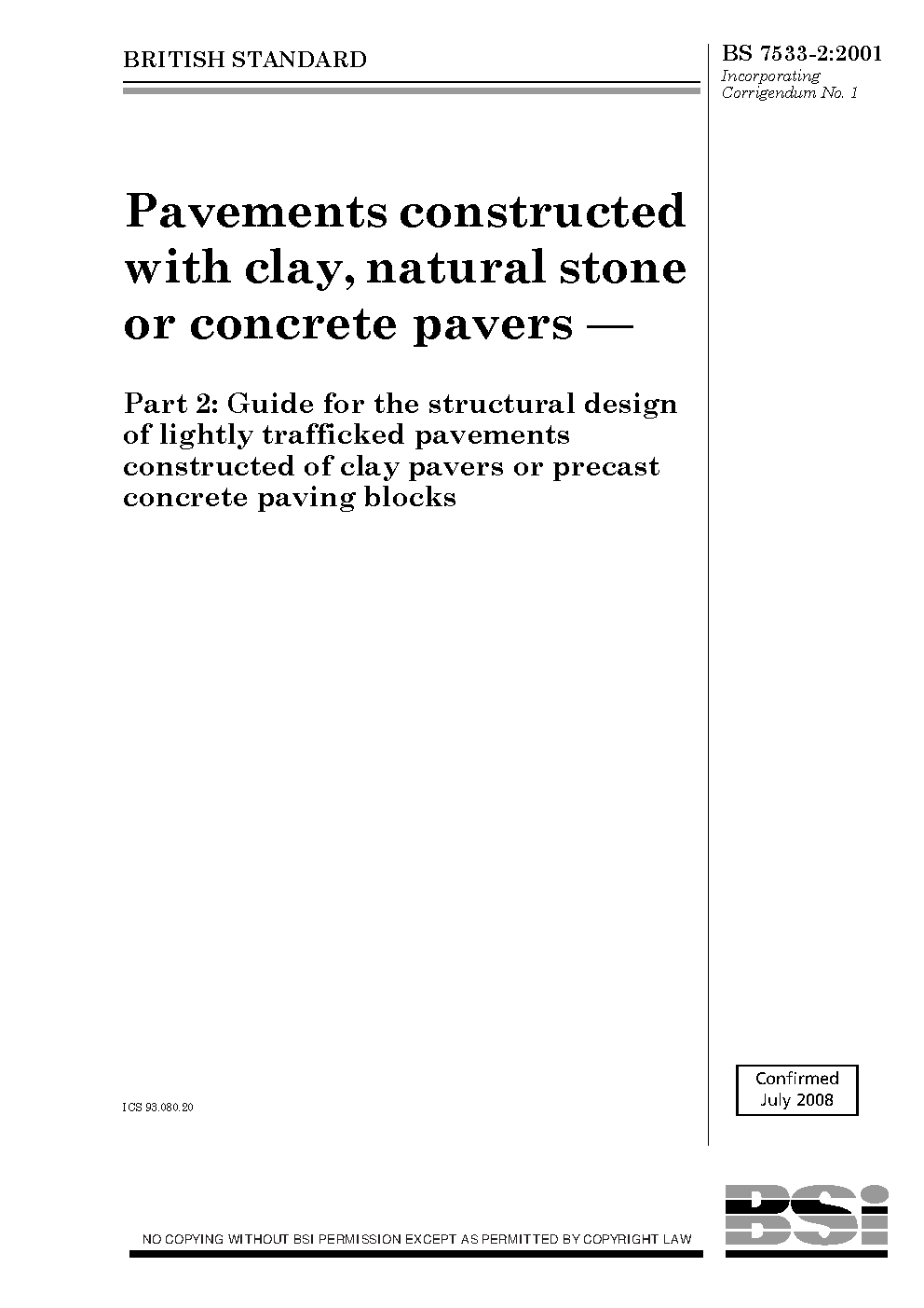 Pavements constructed with clay, natural stone or concrete pavers Guide for the structural design of lightly trafficked pavements clay precast paving blocks