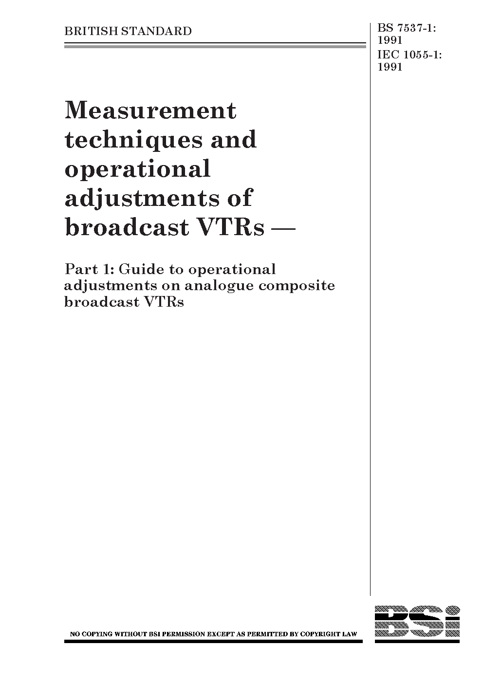 Measurement techniques and operational adjustments of broadcast VTRs Guide to on analogue composite