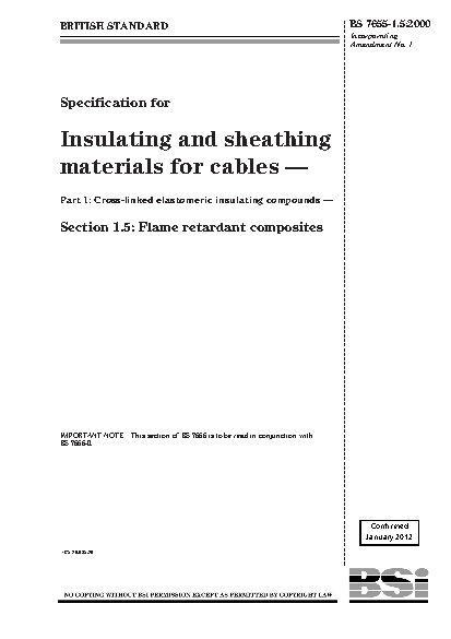 Specification for insulating and sheathing materials cables Cross-linked elastomeric compounds Flame retardant composites