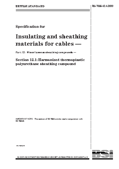 Specification for insulating and sheathing materials cables. Miscellaneous compounds Harmonized thermoplastic polyurethane compound