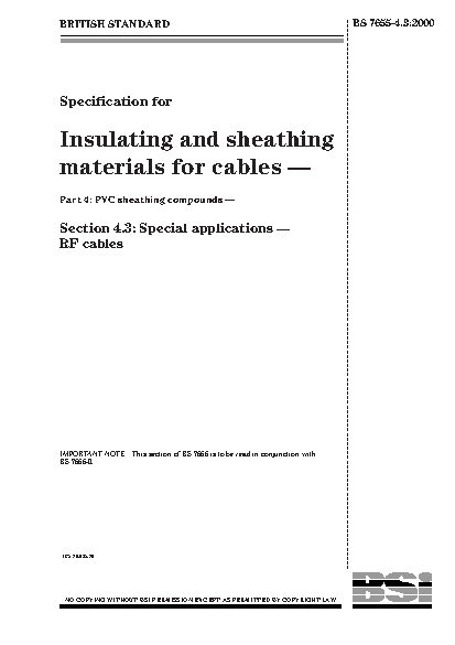 Specification for insulating and sheathing materials cables. PVC compounds Special applications RF cables