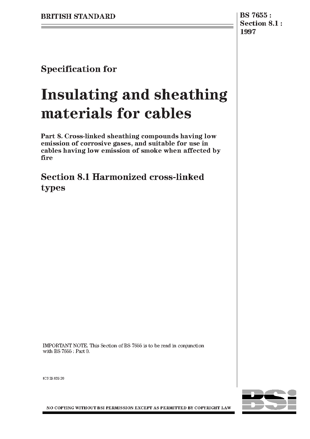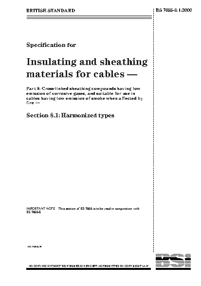 Specification for insulating and sheathing materials cables. PVC compounds Harmonized cross-linked types