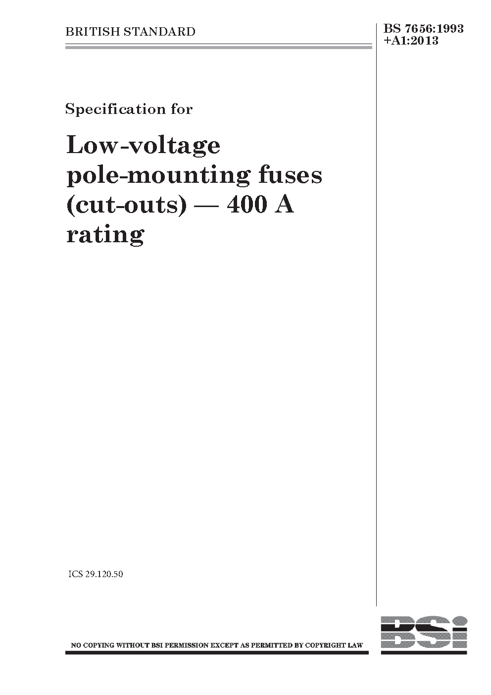 Specification for Low-voltage pole-mounting fuses (cut-outs). 400 A rating