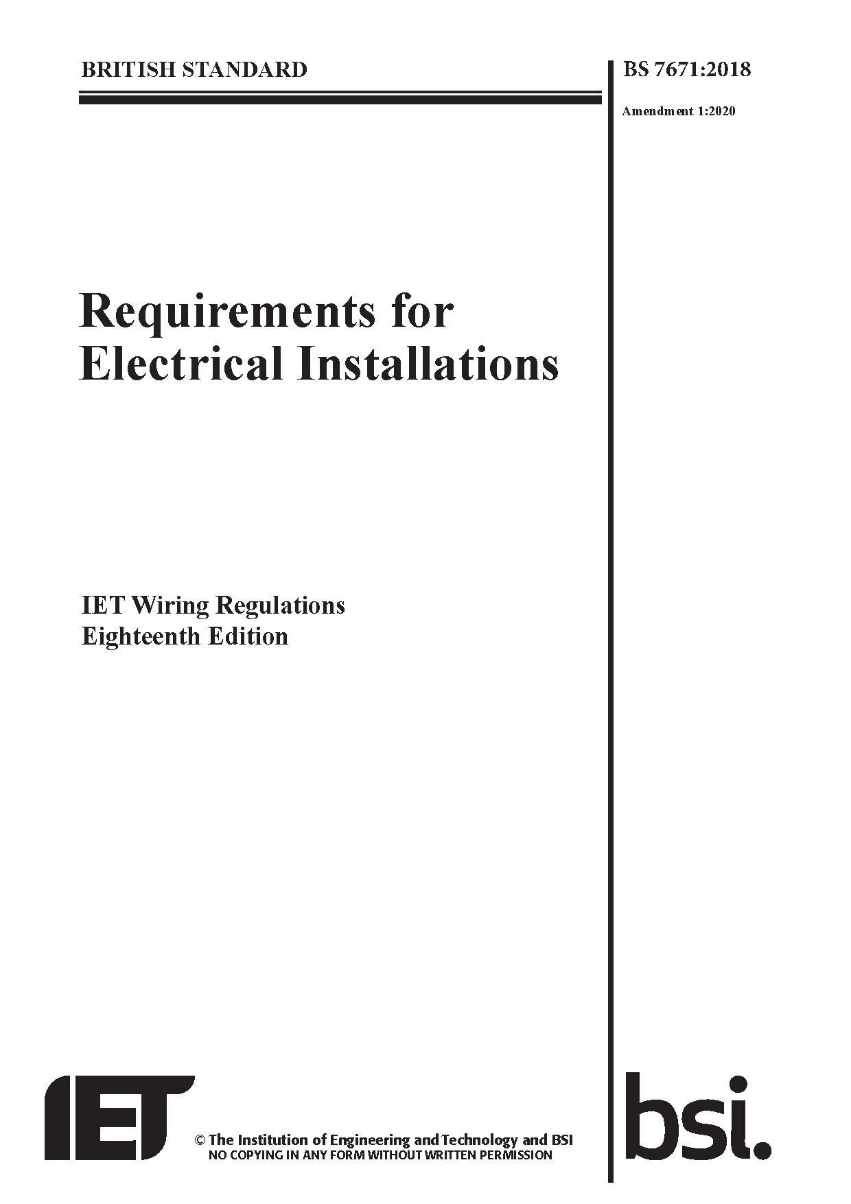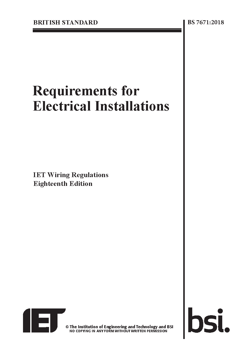 Requirements for Electrical Installations. IET Wiring Regulations