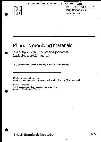 Phenolic moulding materials Specification for physical properties (excluding type L2 material)