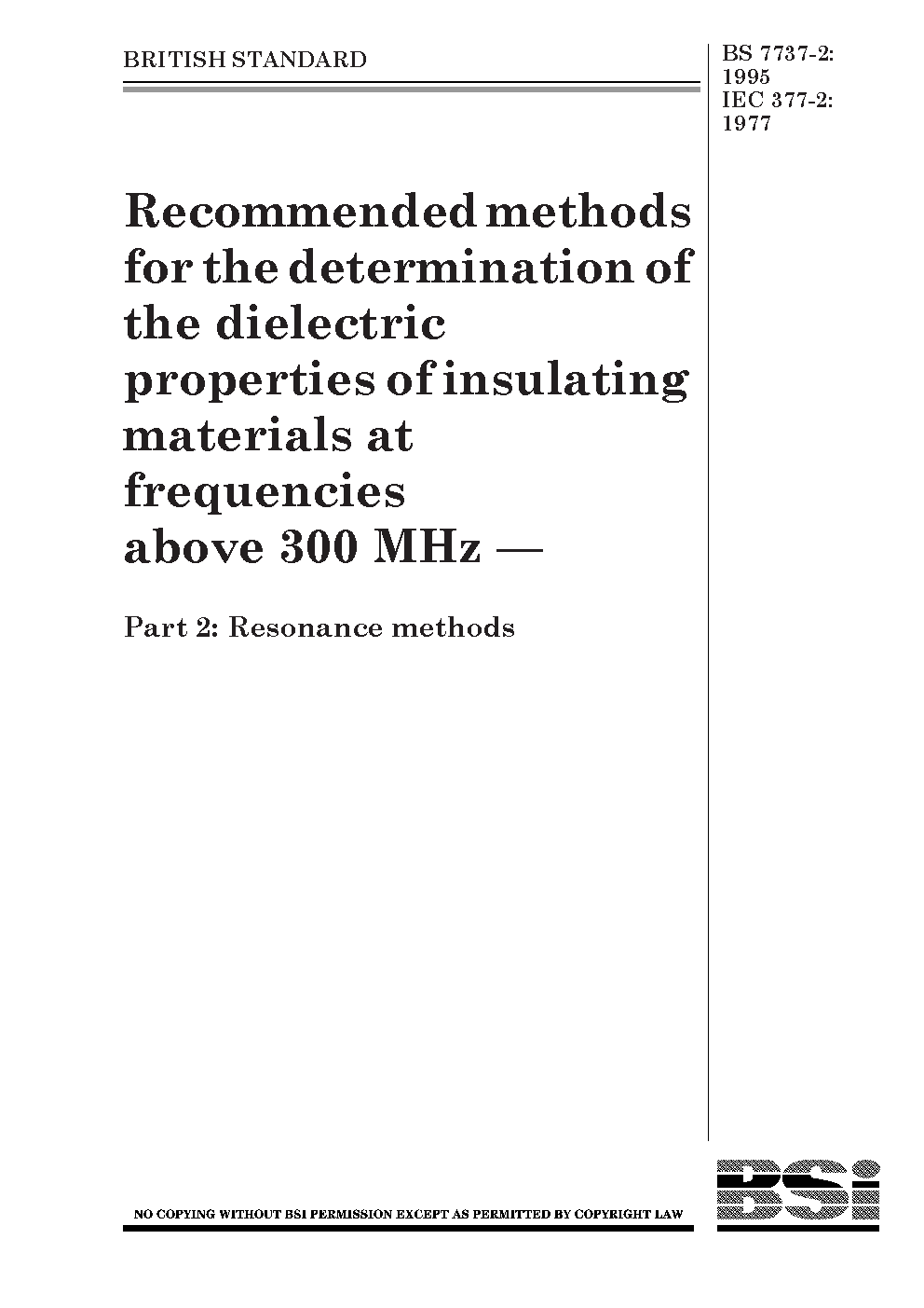 Recommended methods for the determination of dielectric properties insulating materials at frequencies above 300 MHz Resonance