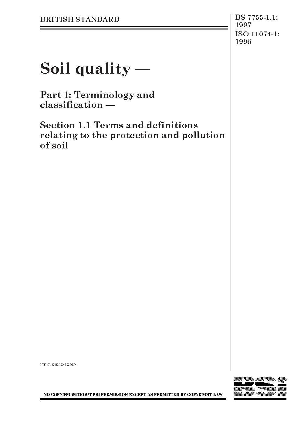 Soil quality. Terminology and classification Terms definitions relating to the protection pollution of soil