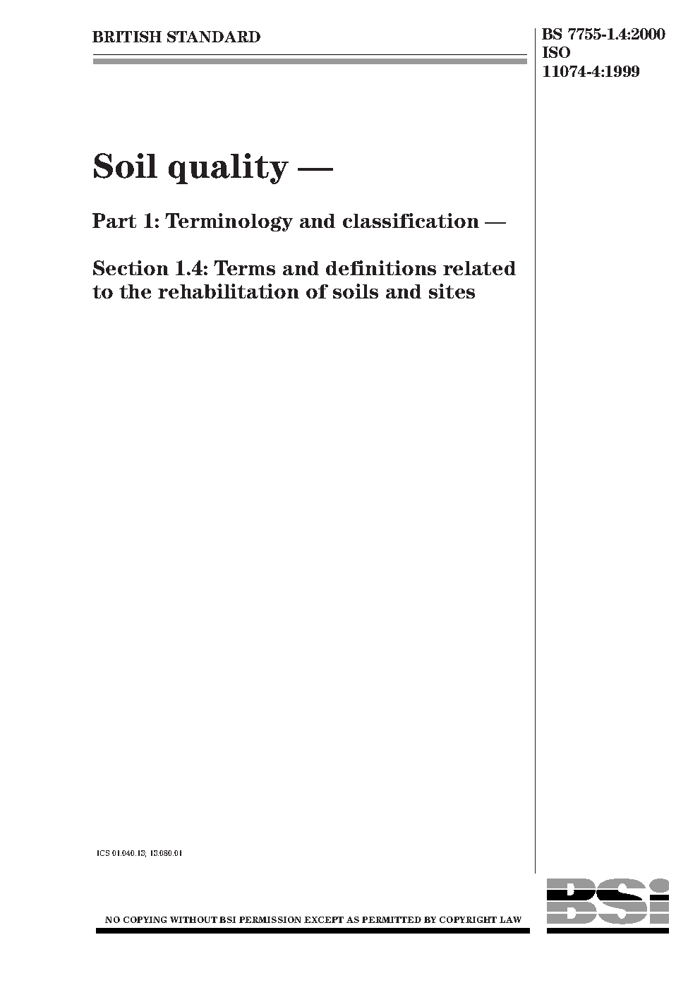 Soil quality. Terminology and classification Terms definitions related to the rehabilitation of soils sites Section 1.4:
