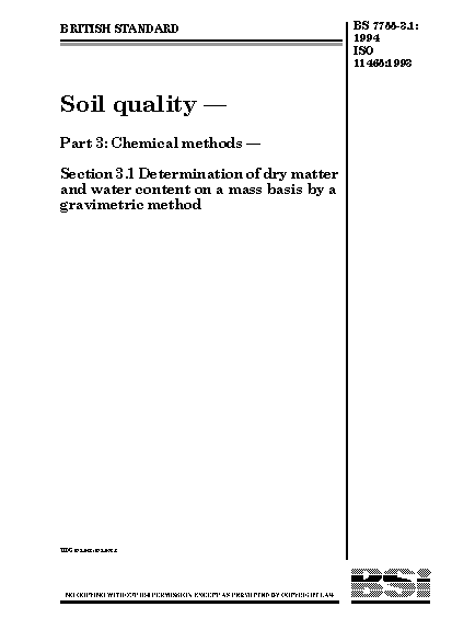Soil quality. Chemical methods Determination of dry matter and water content on a mass basis by gravimetric method