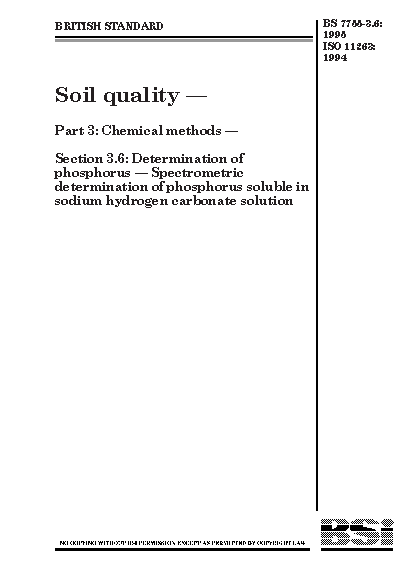 Soil quality. Chemical methods Determination of phosphorus. Spectrometric determination phosphorus soluble in sodium hydrogen carbonate solution