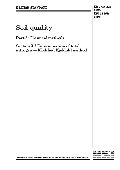 Soil quality. Chemical methods Determination of total nitrogen. Modified Kjeldahl method