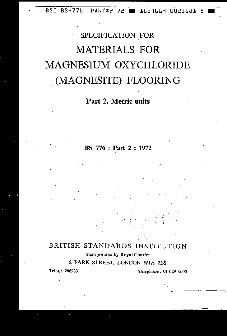 Specification for materials magnesium oxychloride (magnesite) flooring Metric units