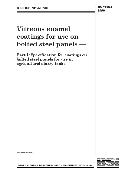 Vitreous enamel coatings for use on bolted steel panels Specification in agricultural slurry tanks