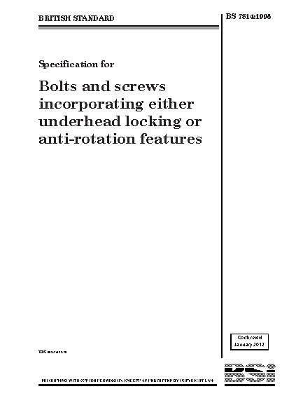 Specification for bolts and screws incorporating either underhead locking or anti-rotation features