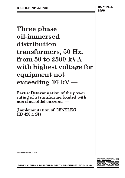Three phase oil-immersed distribution transformers, 50 Hz, from to 2500 kVA with highest voltage for equipment not exceeding 36 kV Determination of the power rating a transformer loaded non-sinusoidal currents