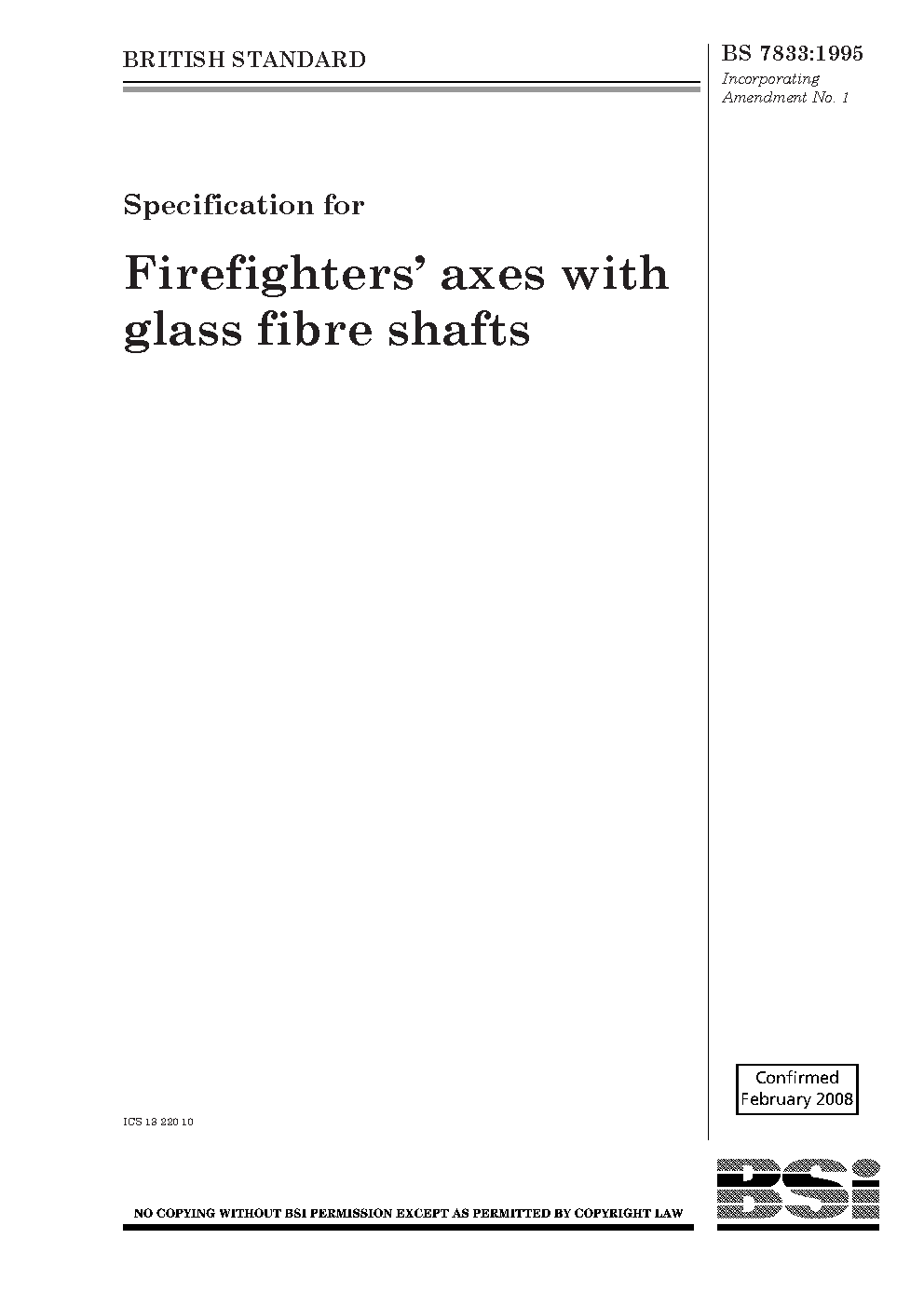 Specification for firefighters' axes with glass fibre shafts