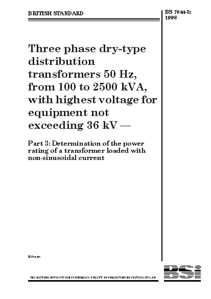 Three-phase dry-type distribution transformers 50 Hz, from 100 to 2500 kVA with highest voltage for equipment not exceeding 36 kV Determination of the power rating a transformer loaded non-sinusoidal current