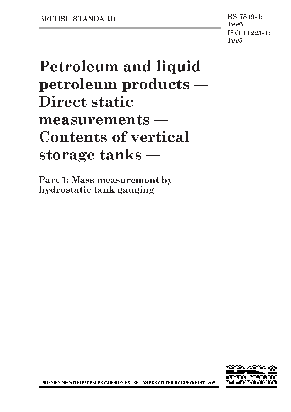 Petroleum and liquid petroleum products. Direct static measurements. Contents of vertical storage tanks Mass measurement by hydrostatic tank gauging