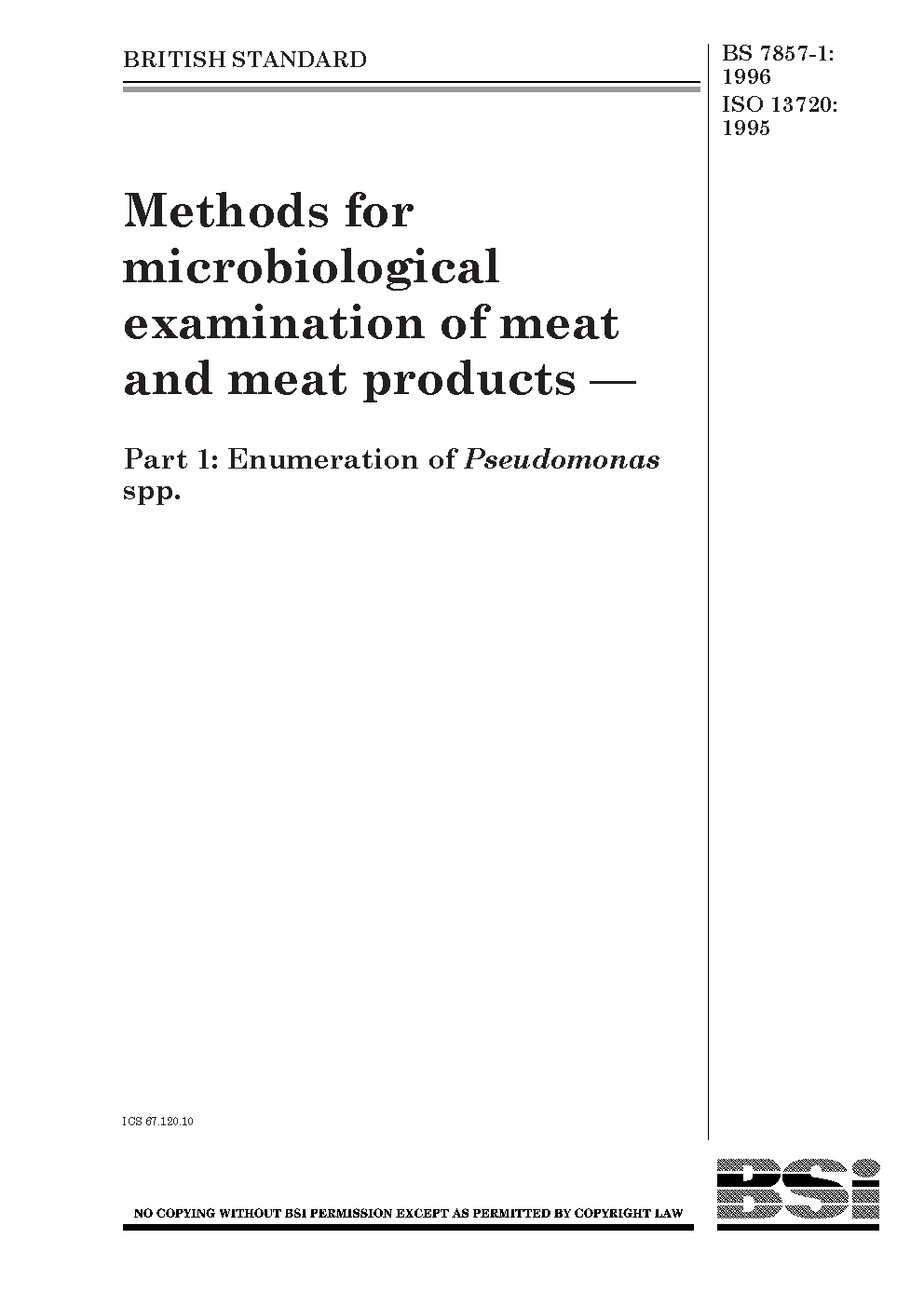 Methods for microbiological examination of meat and products Enumeration Pseudomonas spp.