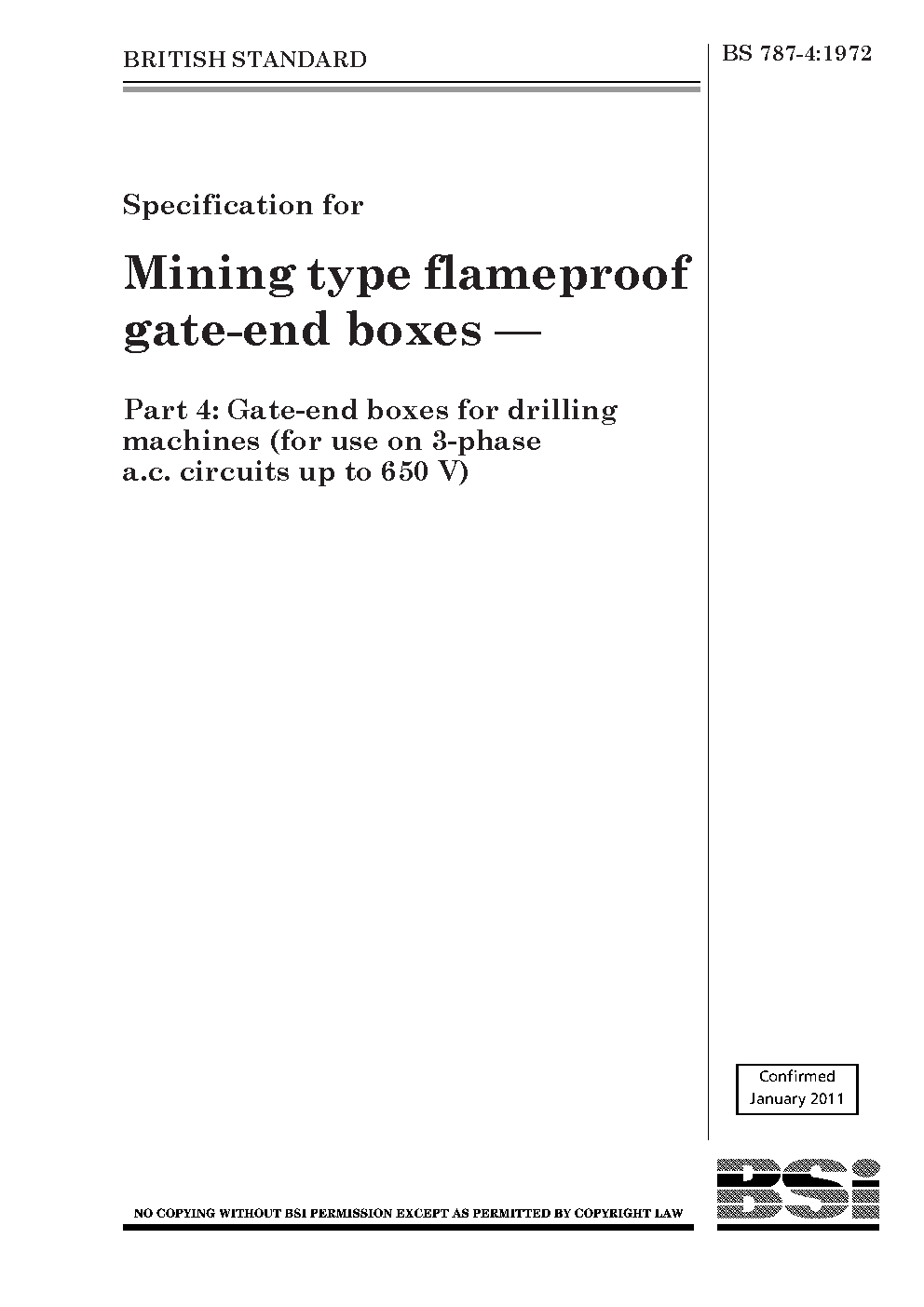 Specification for mining type flameproof gate-end boxes Gate-end drilling machines (for use on 3-phase a.c. circuits up to 650 V)