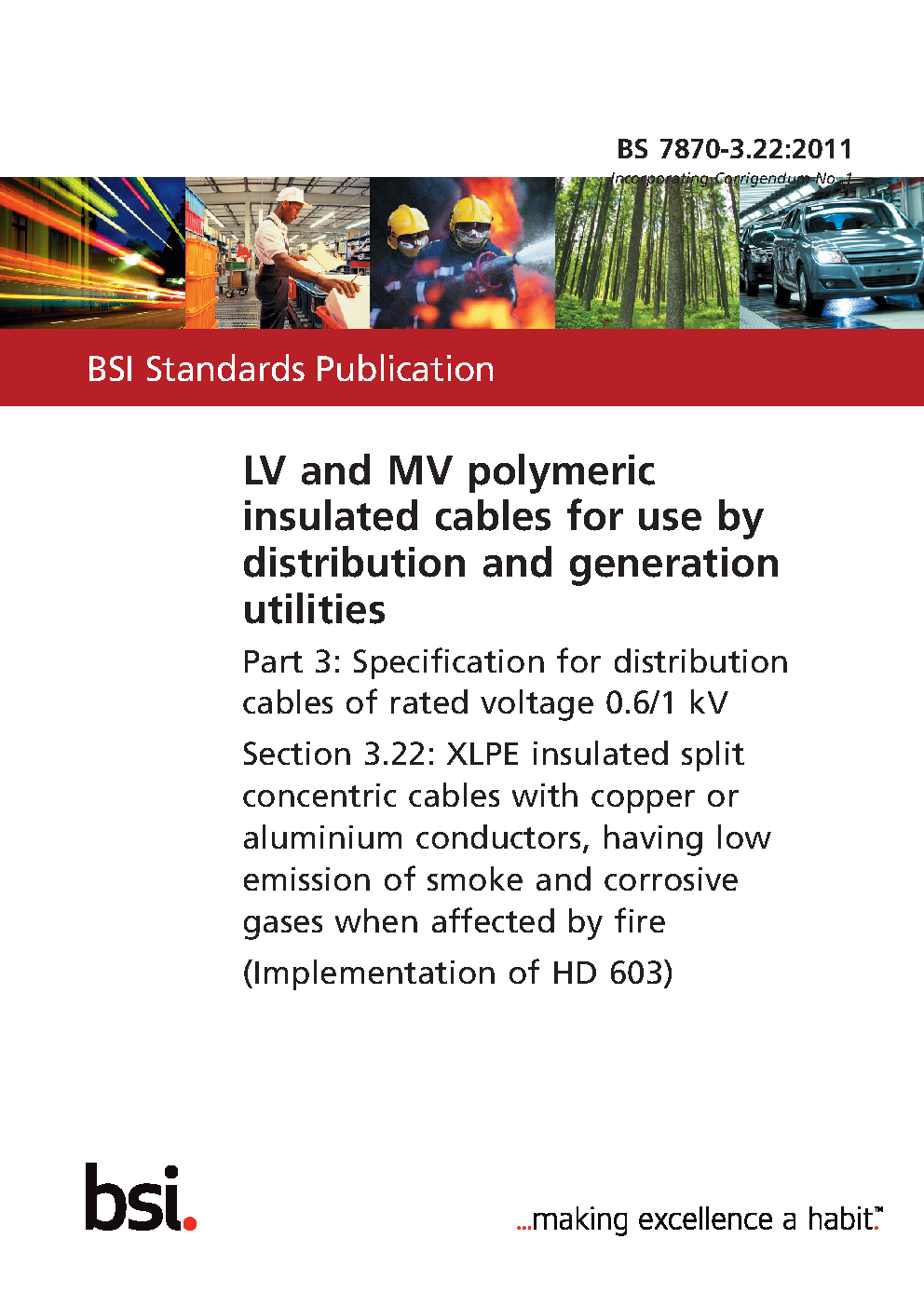 LV and MV polymeric insulated cables for use by distribution generation utilities Specification of rated voltage 0.6/1 kV. XLPE split concentric with copper or aluminium conductors, having low emission smoke corrosive gases when affected fire