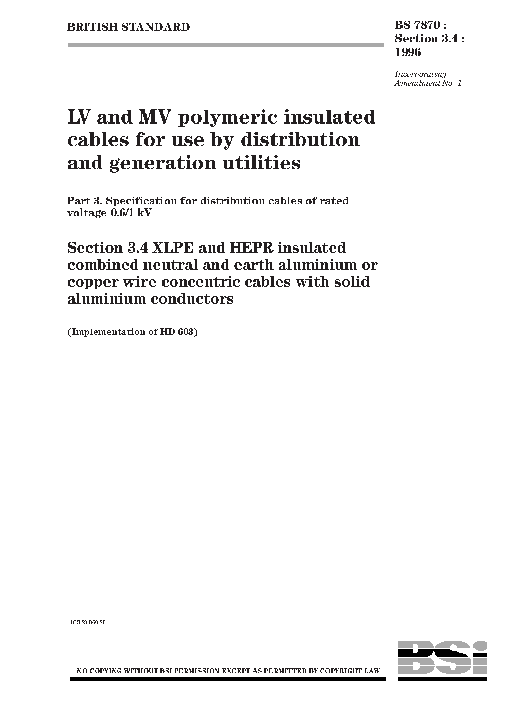 LV and MV polymeric insulated cables for use by distribution generation utilities. Specification of rated voltage 0.6/1 kV XLPE HEPR combined neutral earth aluminium or copper wire concentric with solid conductors