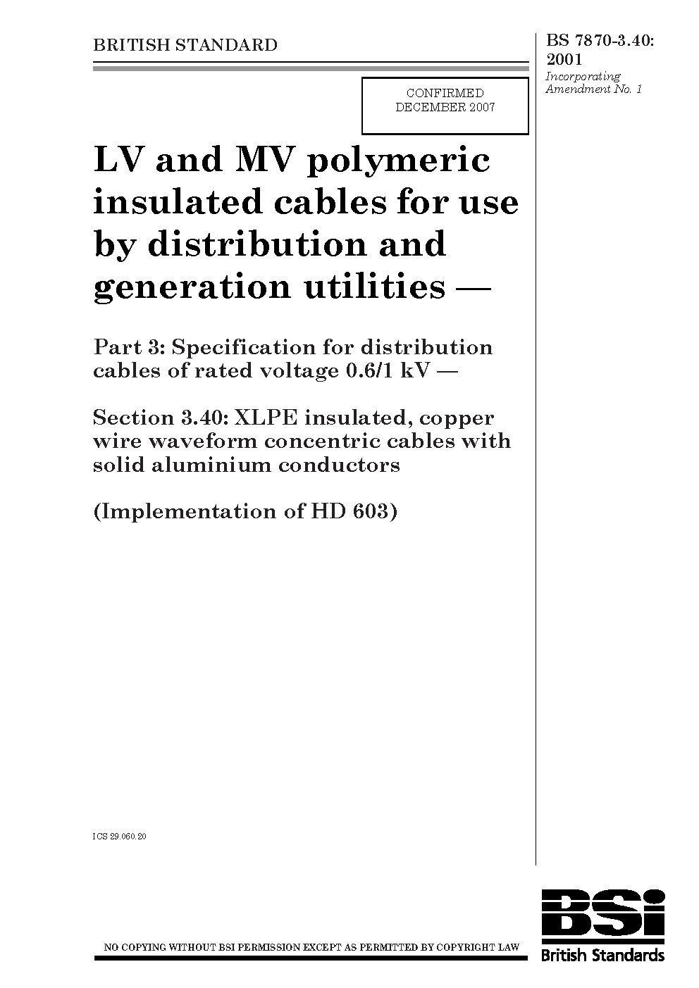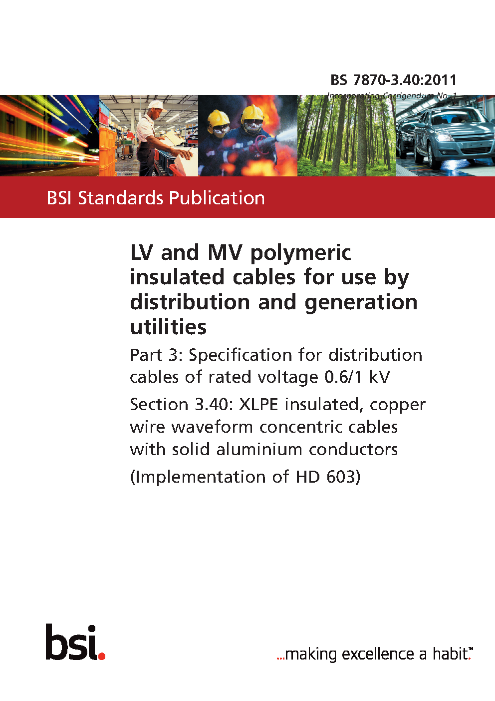 LV and MV polymeric insulated cables for use by distribution generation utilities Specification of rated voltage 0.6/1 kV. XLPE insulated, copper wire waveform concentric with solid aluminium conductors