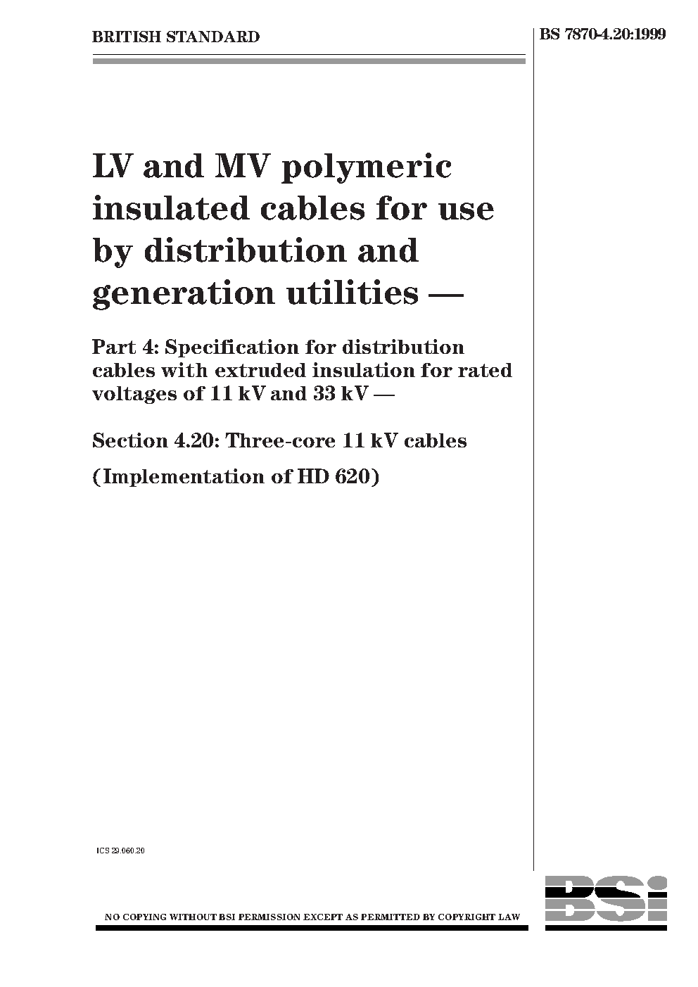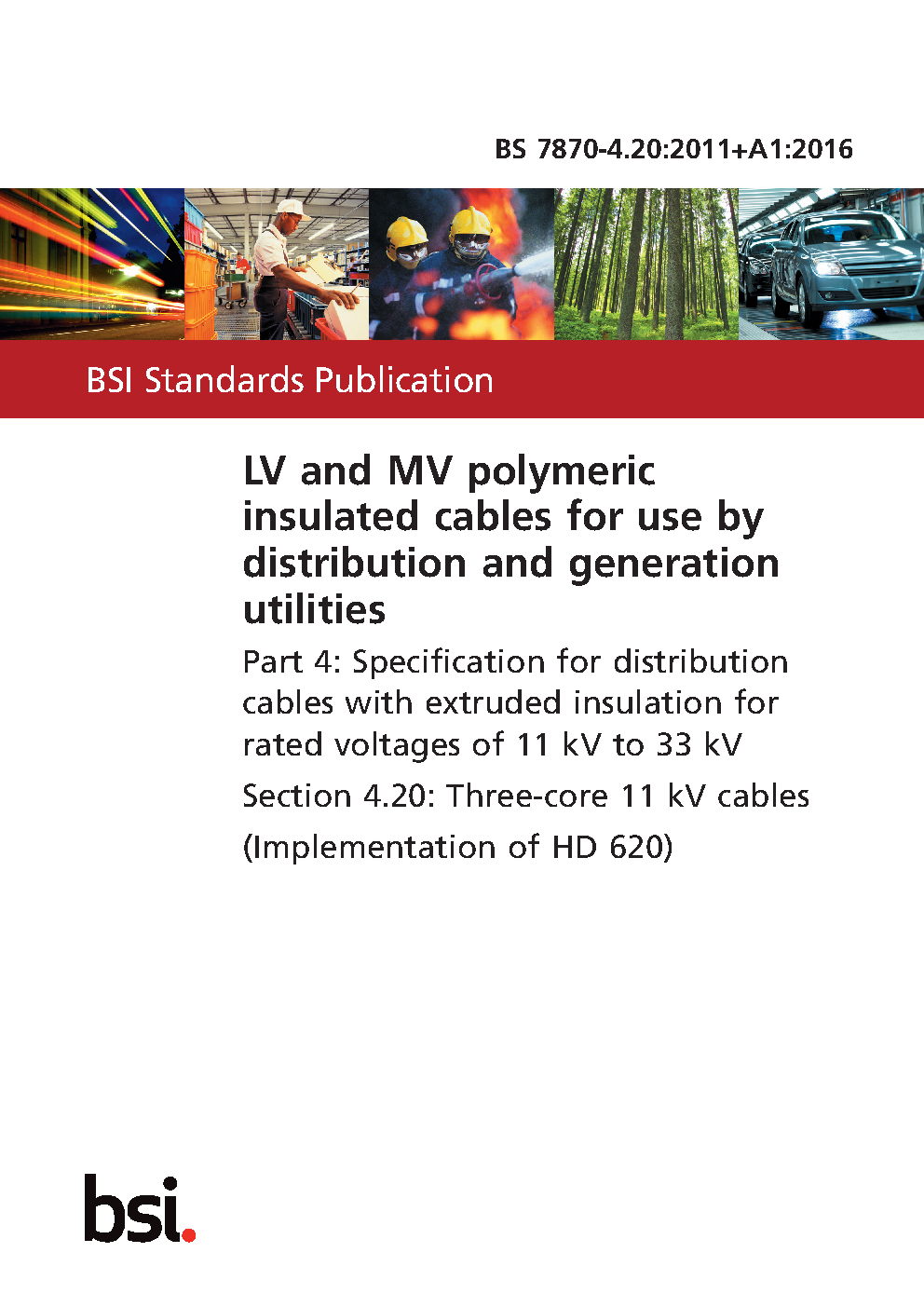 LV and MV polymeric insulated cables for use by distribution generation utilities Specification with extruded insulation rated voltages of 11 kV to 33 Three-core (Implementation HD 620)