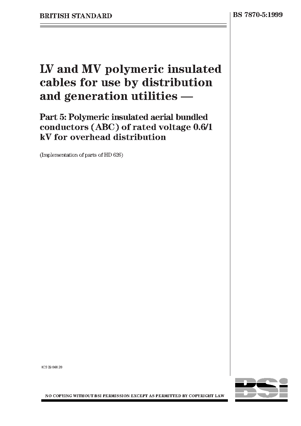 LV and MV polymeric insulated cables for use by distribution generation utilities Polymeric aerial bundled conductors (ABC) of rated voltage 0.6/1 kV overhead