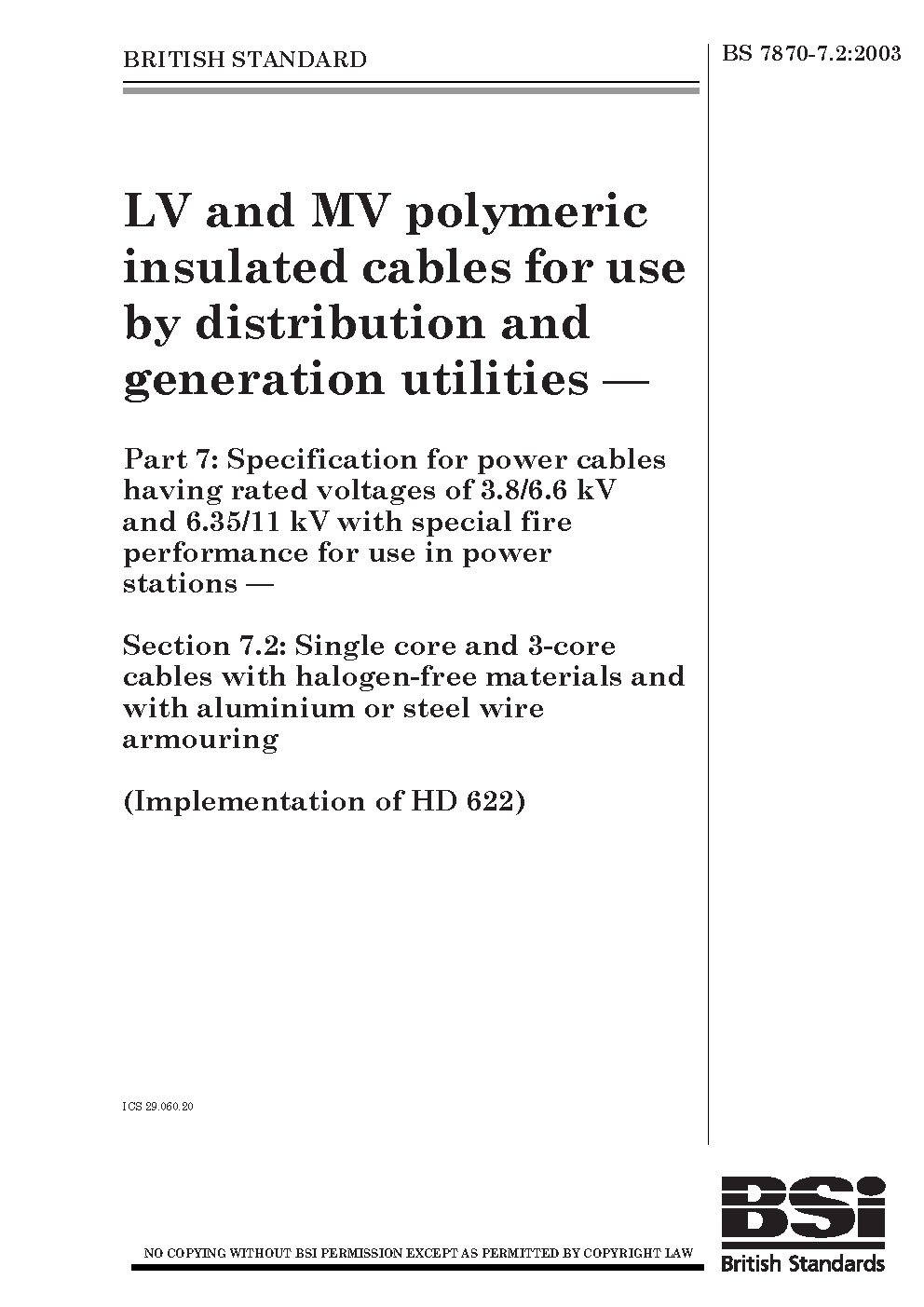LV and MV polymeric insulated cables for use by distribution generation utilities. Specification power having rated voltages of 3.8/6.6 kV 6.35/11 with special fire performance in stations Single-core 3-core halogen-free materials aluminium or steel wire armouring