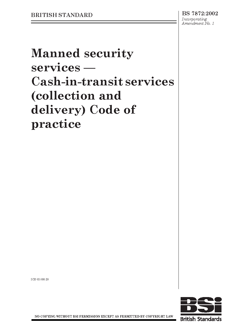 Manned security services. Cash and valuables in transit services (collection and delivery). Code of practice