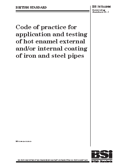 Code of practice for application and testing of hot enamel external and/or internal coating of iron and steel pipes