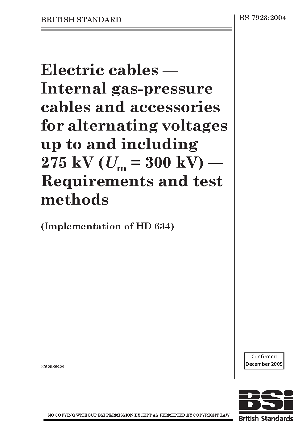 Electric cables. Internal gas-pressure cables and accessories for alternating voltages up to and including 275 kV (Um = 300 kV). Requirements and test methods