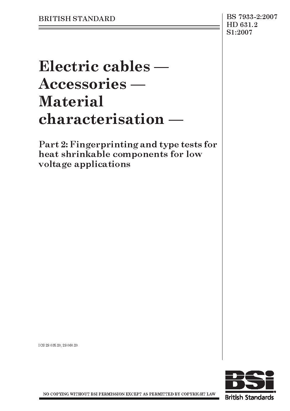 Electric cables. Accessories. Material characterisation Fingerprinting and type tests for heat shrinkable components low voltage applications