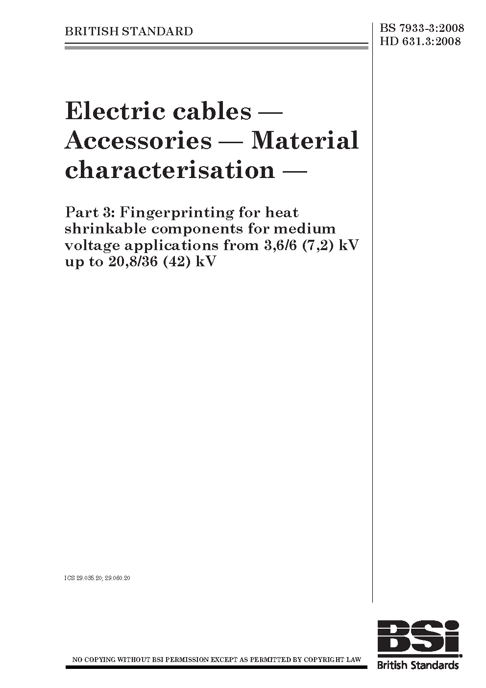 Electric cables. Accessories. Material characterisation Fingerprinting for heat shrinkable components medium voltage applications from 3,6/6 (7,2) kV up to 20,8/36 (42)