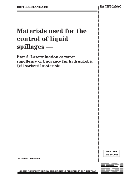 Materials used for the control of liquid spillages Determination water repellency or buoyancy hydrophobic (oil sorbent) materials