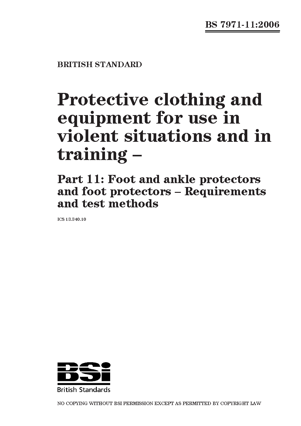 Protective clothing and equipment for use in violent situations training Footwear. Requirements test methods