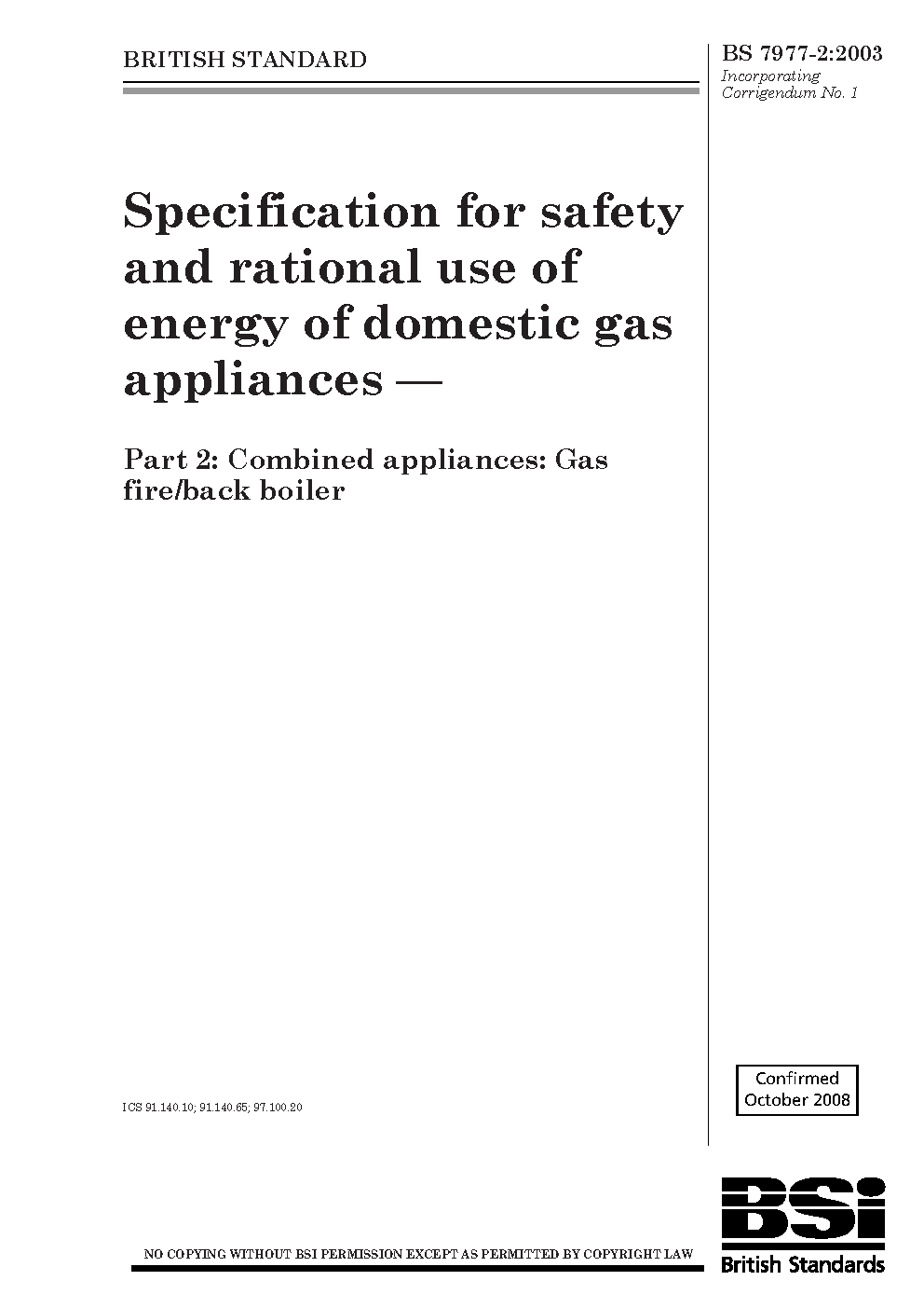 Specification for safety and rational use of energy domestic gas appliances Combined appliances. Gas fire/back boiler
