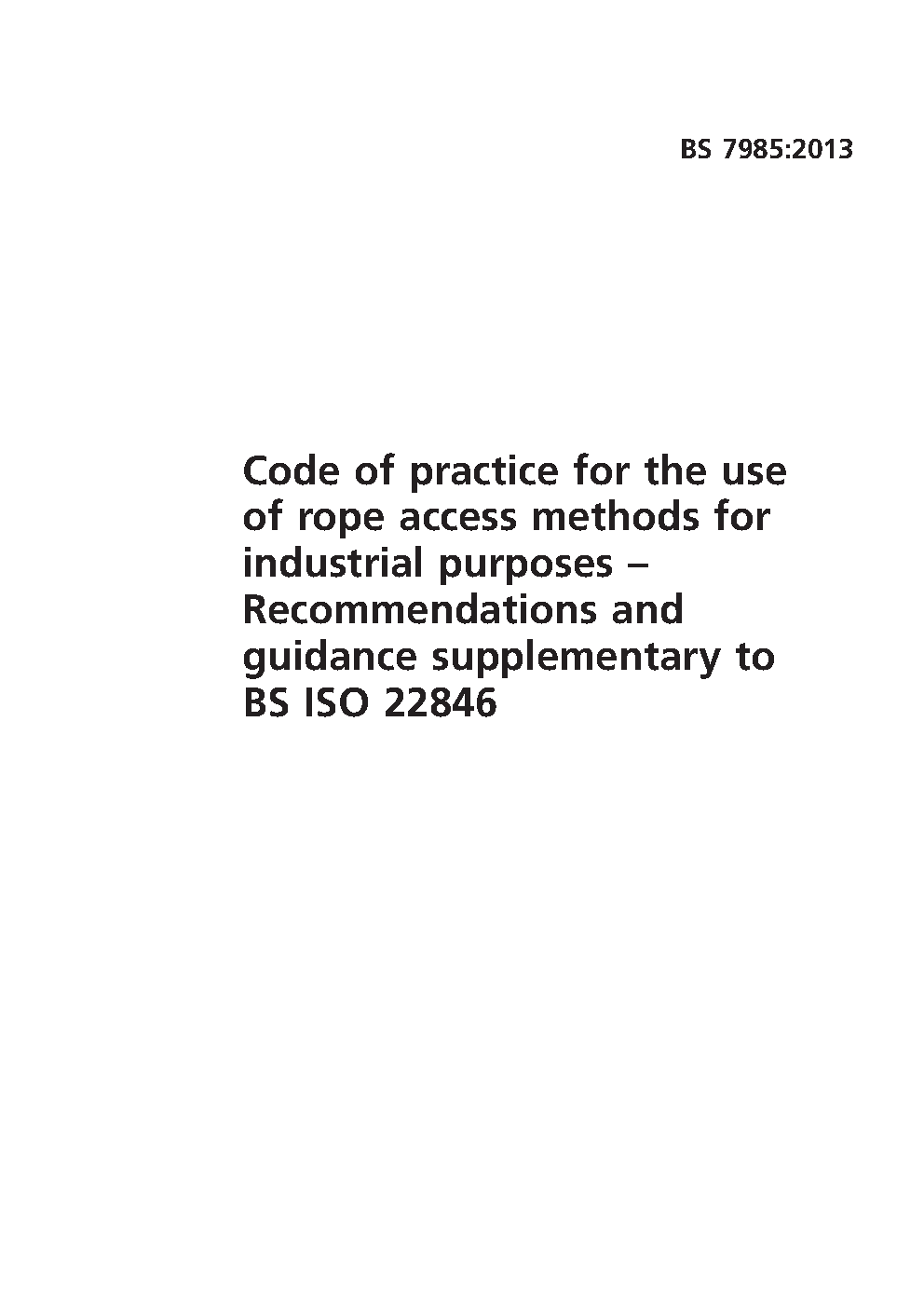 Code of practice for the use of rope access methods for industrial purposes. Recommendations and guidance supplementary to BS ISO 22846