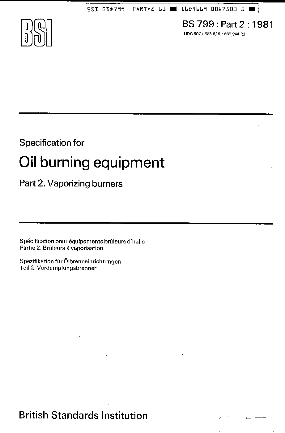 Oil burning equipment Specification for vaporizing burners