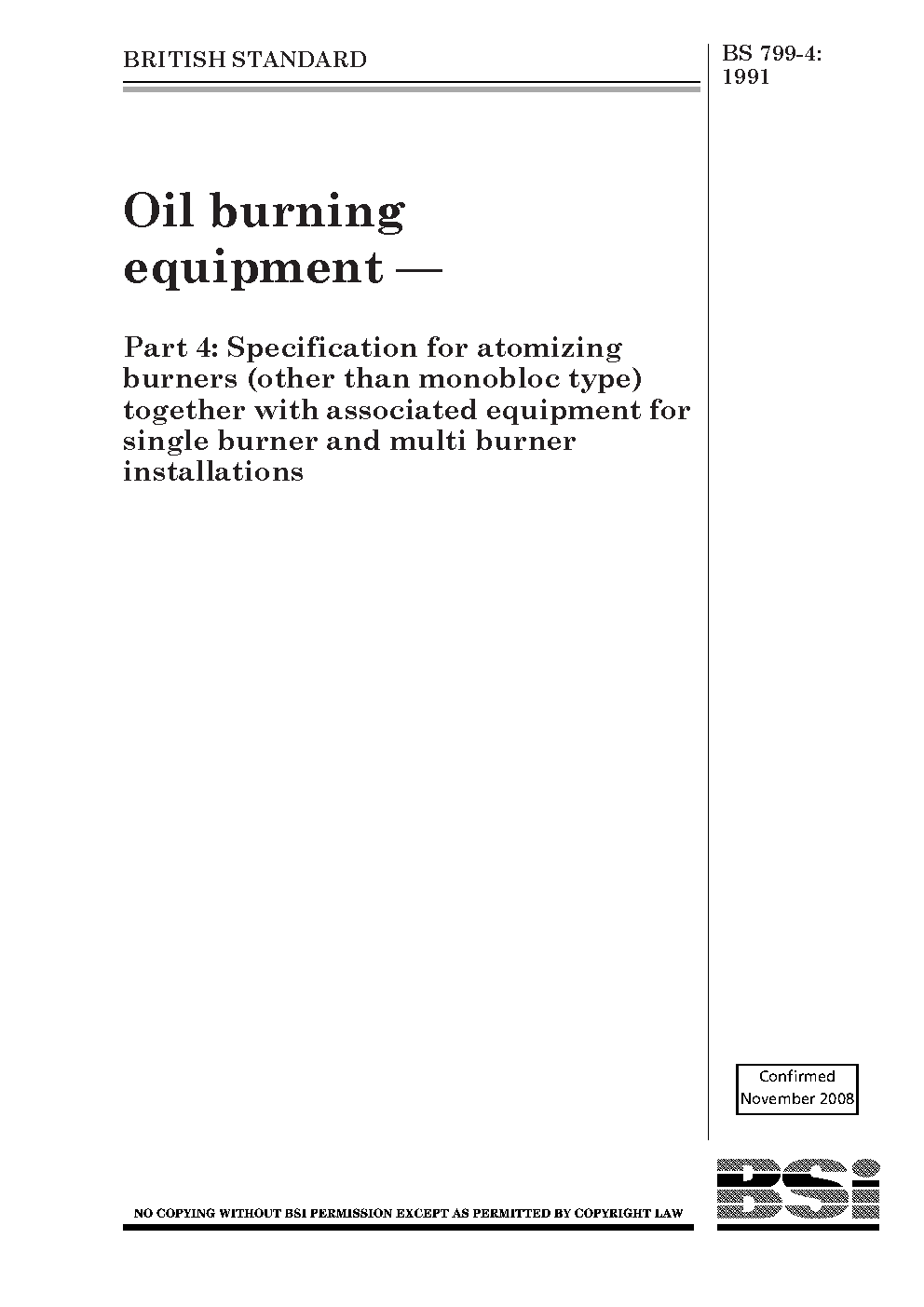 Oil burning equipment Specification for atomizing burners (other than monobloc type) together with associated single burner and multi installations