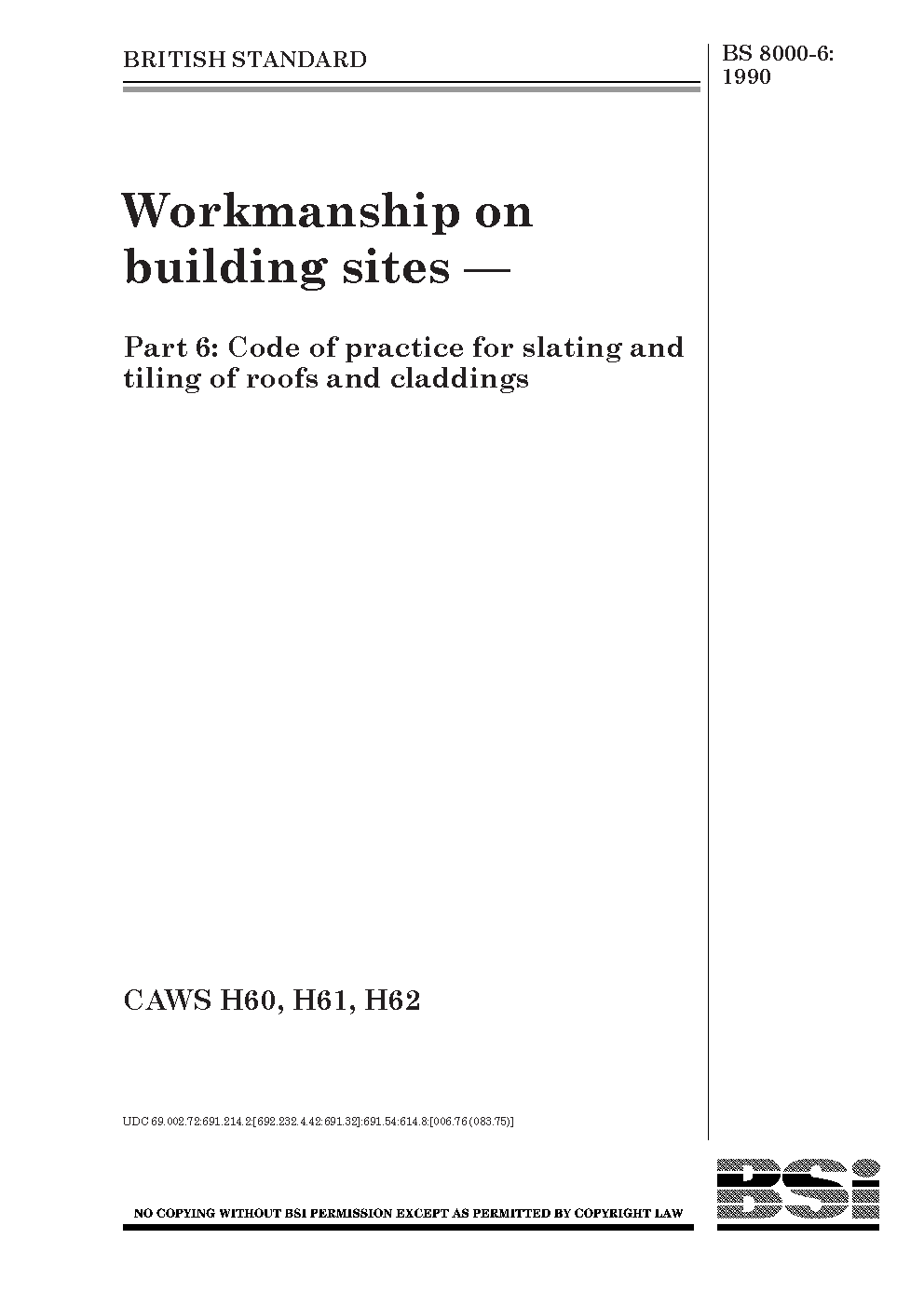 Workmanship on building sites Code of practice for slating and tiling roofs claddings