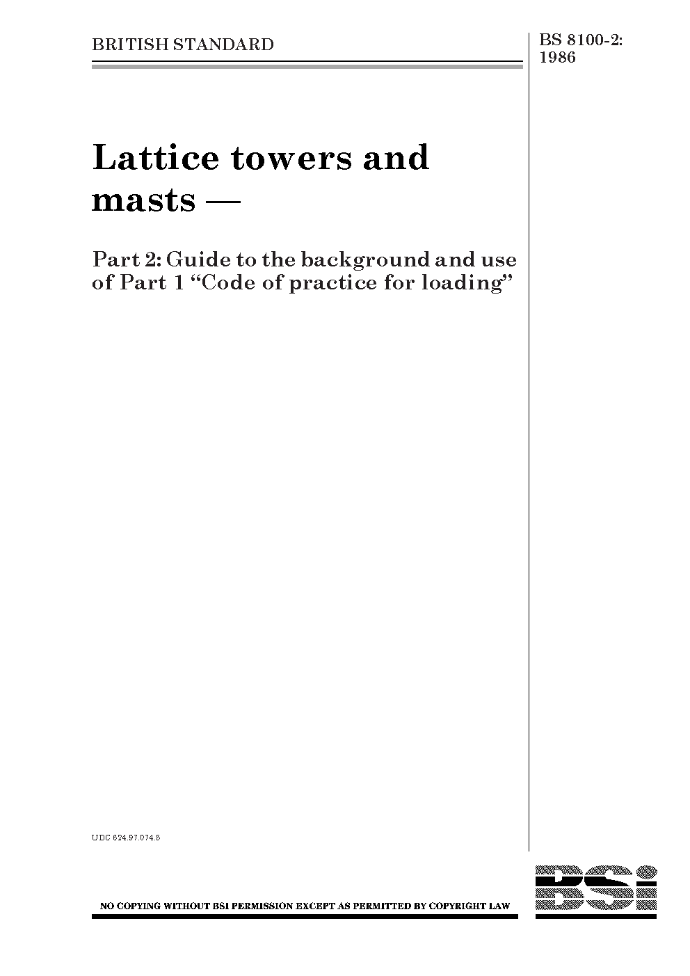 Lattice towers and masts Guide to the background use of Part 1 'Code practice for loading'