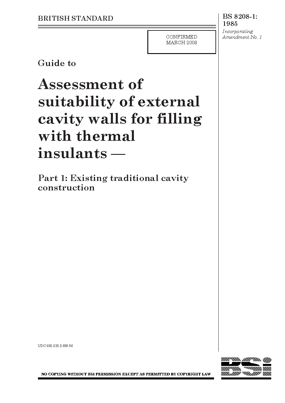 Guide to assessment of suitability external cavity walls for filling with thermal insulants Existing traditional construction