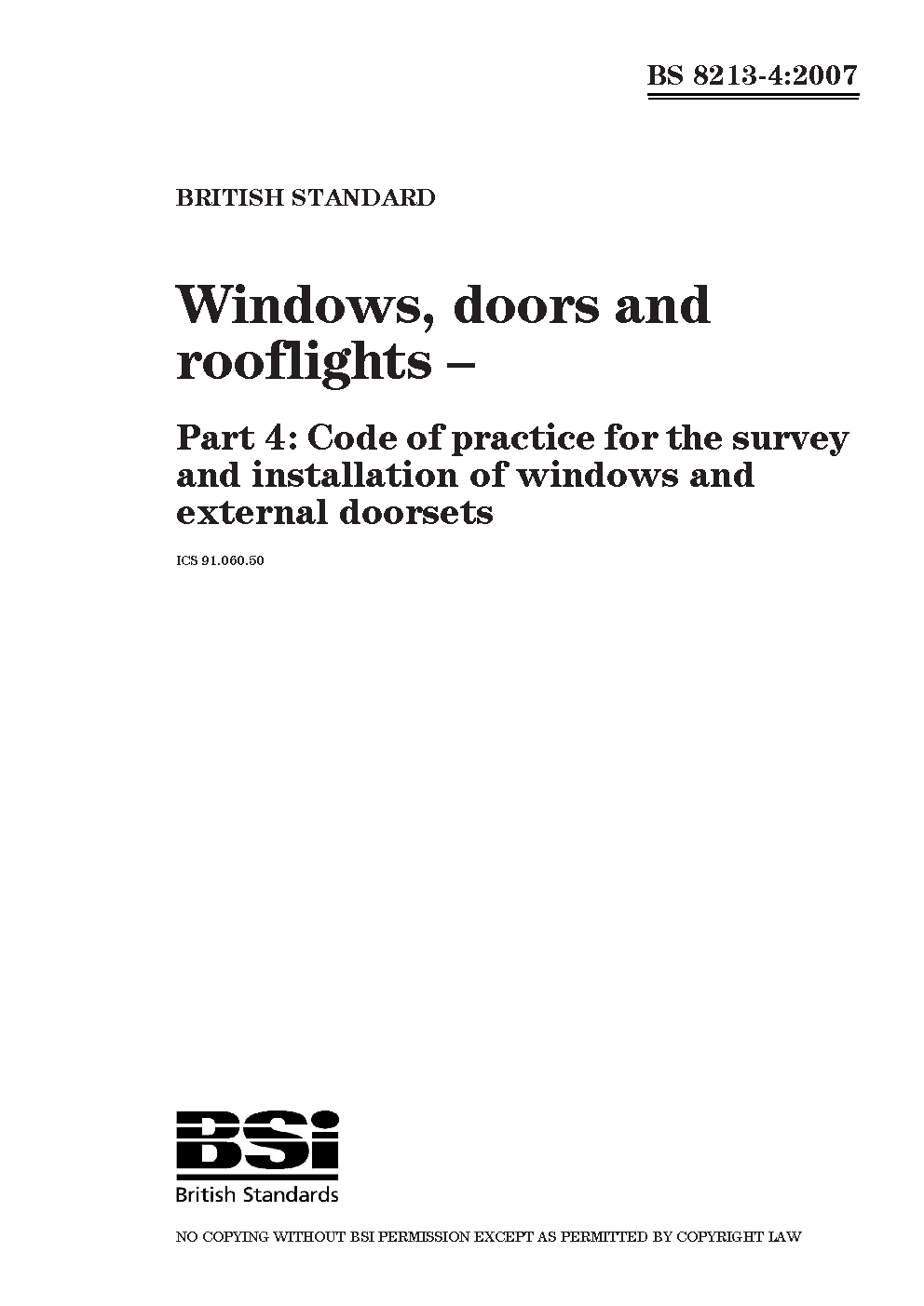 Windows and doors Code of practice for the survey installation windows external doorsets