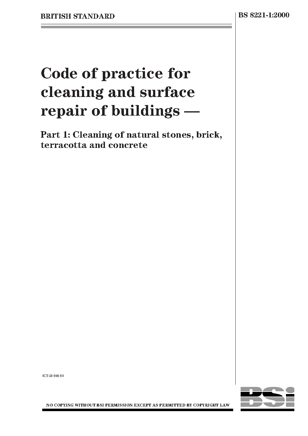 Code of practice for cleaning and surface repair buildings Cleaning natural stone, brick, terracotta concrete