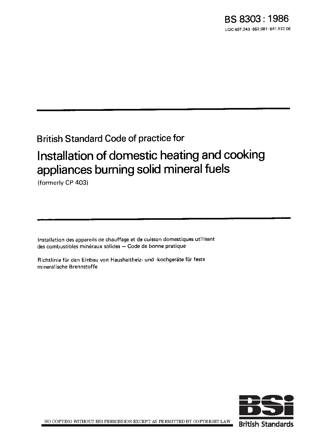 Code of practice for installation of domestic heating and cooking appliances burning solid mineral fuels