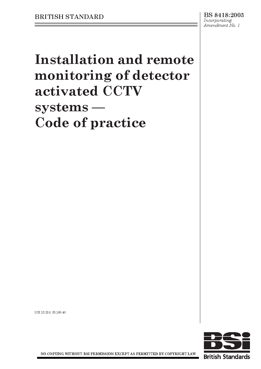 Installation and remote monitoring of detector activated CCTV systems. Code of practice