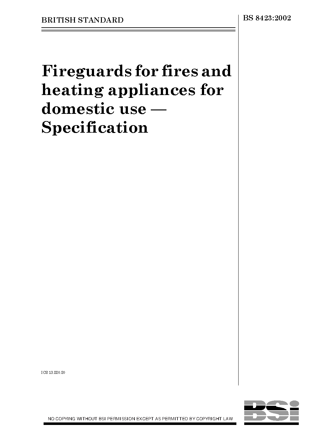 Fireguards for fires and heating appliances for domestic use. Specification